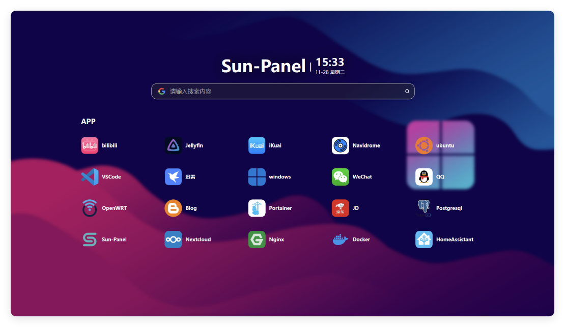 Sun-Panel是一款好看又实用的NAS导航工具,它的核心是解决了传统导航栏内外网配置的问题。